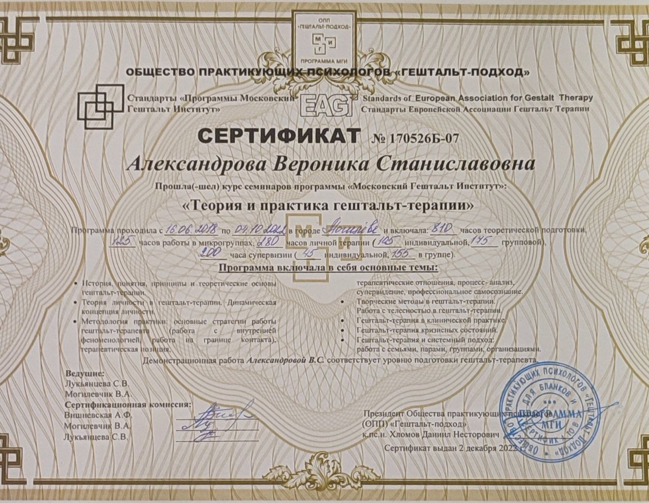 Больше 5 лет обучения: программа, специализации, группы, индивидуальная, супервизорская работа. Поиск себя, своего профессионального подчерка, своей структуры, своей полезности.