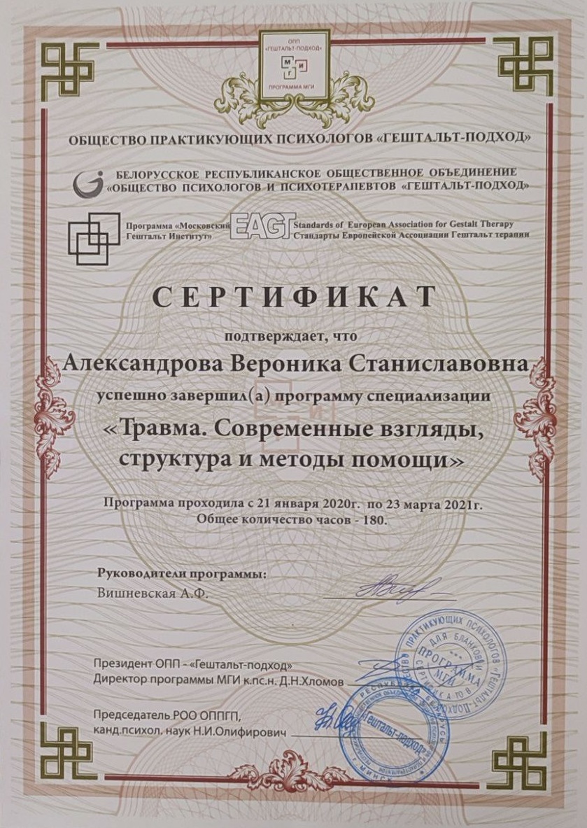Начала с нуля. Получила диплом о переподготовке, и пошла в Московский гештальт институт, пораллельно пробуя НЛП-метод, расстановки, исследуя родовую систему.