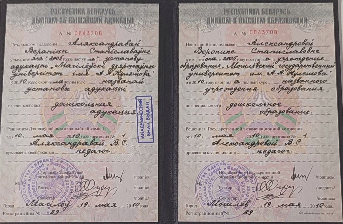 1 хореограф. Отработала 15 лет в спорте, на спортивной мужской гимнастике, готовя достойных спортсменов, мастеров спорта, трениров.